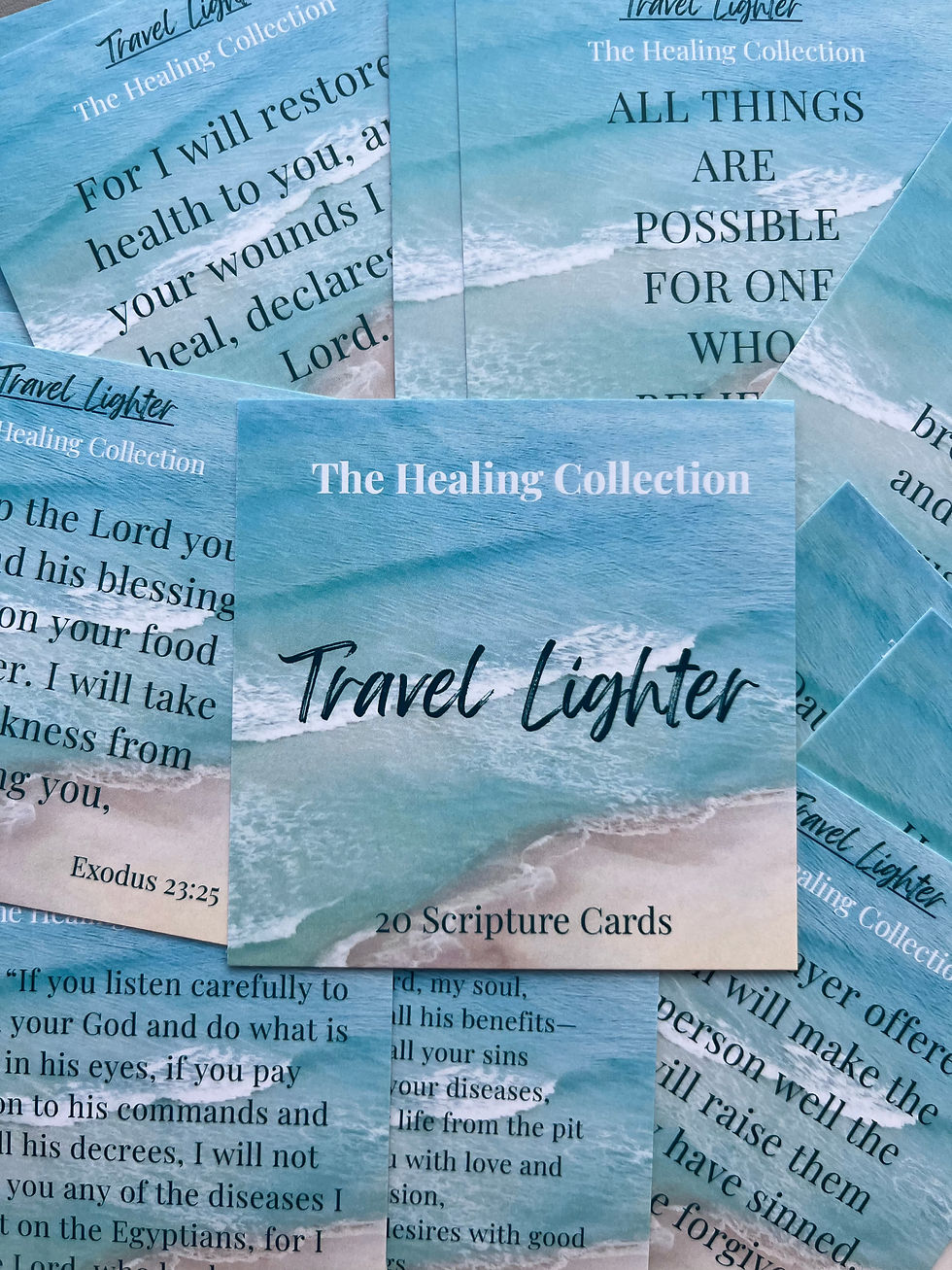 Themed Scripture Cards packs to take with you to school, work, and on your vacation. Great to put in gift, birthday cards, and around the house to remind you of who you are in Jesus.